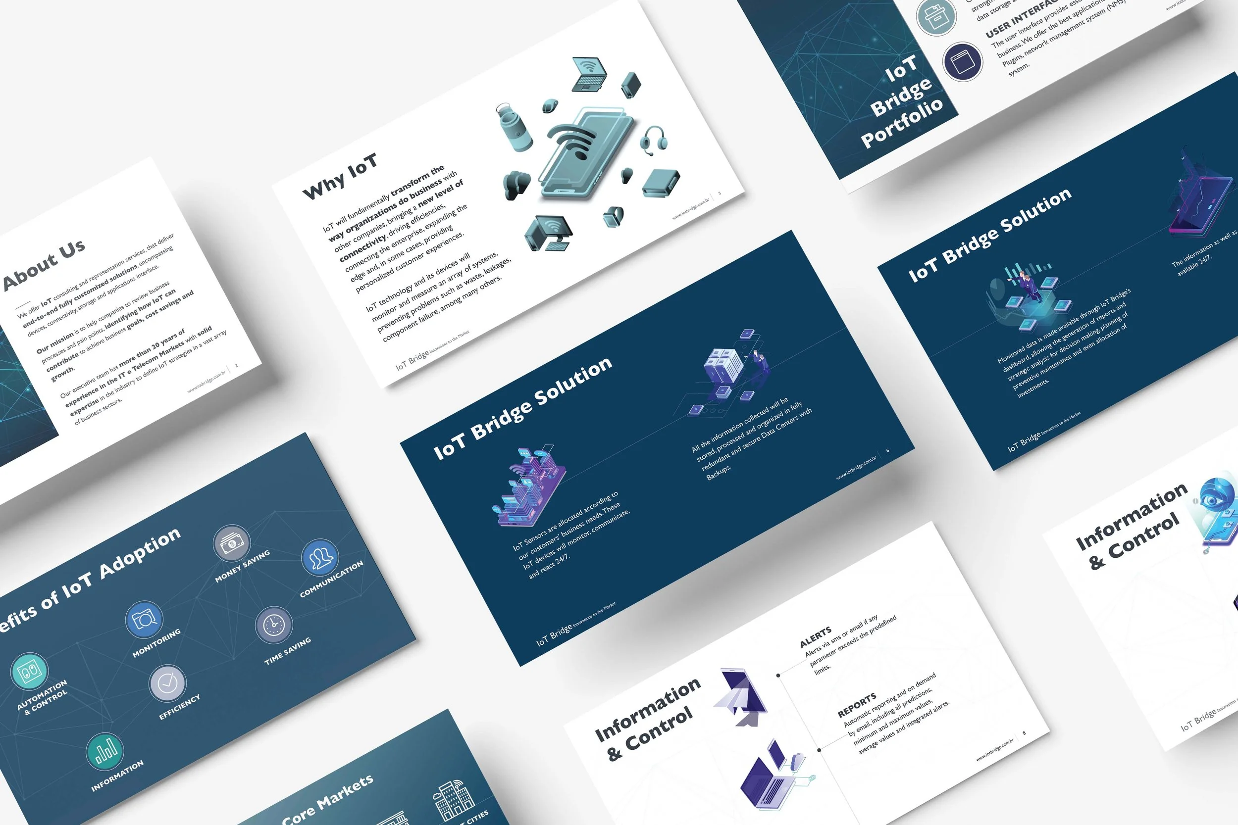 Result. The final materials gave IoT Bridge a clear, structured way to communicate its ecosystem — supporting business development, product positioning and conversations with audiences of any technical background — delivered in both Portuguese and English.
